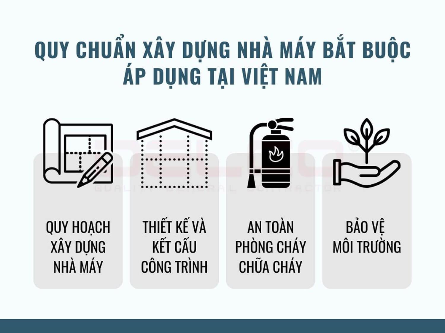 4 quy chuẩn bắt buộc phải tuân thủ trong quá trình thiết kế, triển khai thi công và vận hành nhà máy tại Việt Nam bao gồm: