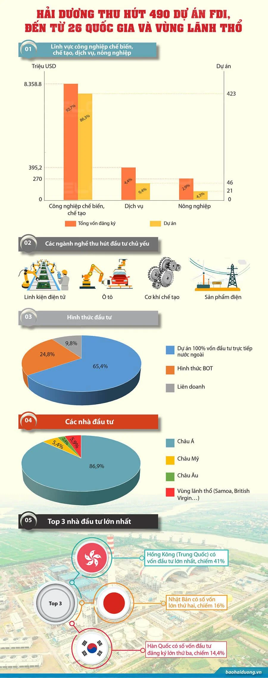 Up to March 31, 2022, Hai Duong has attracted 490 FDI projects from 26 countries and territories, increasing the number of factories, factories, and companies in the area significantly (According to Hai Duong Newspaper).