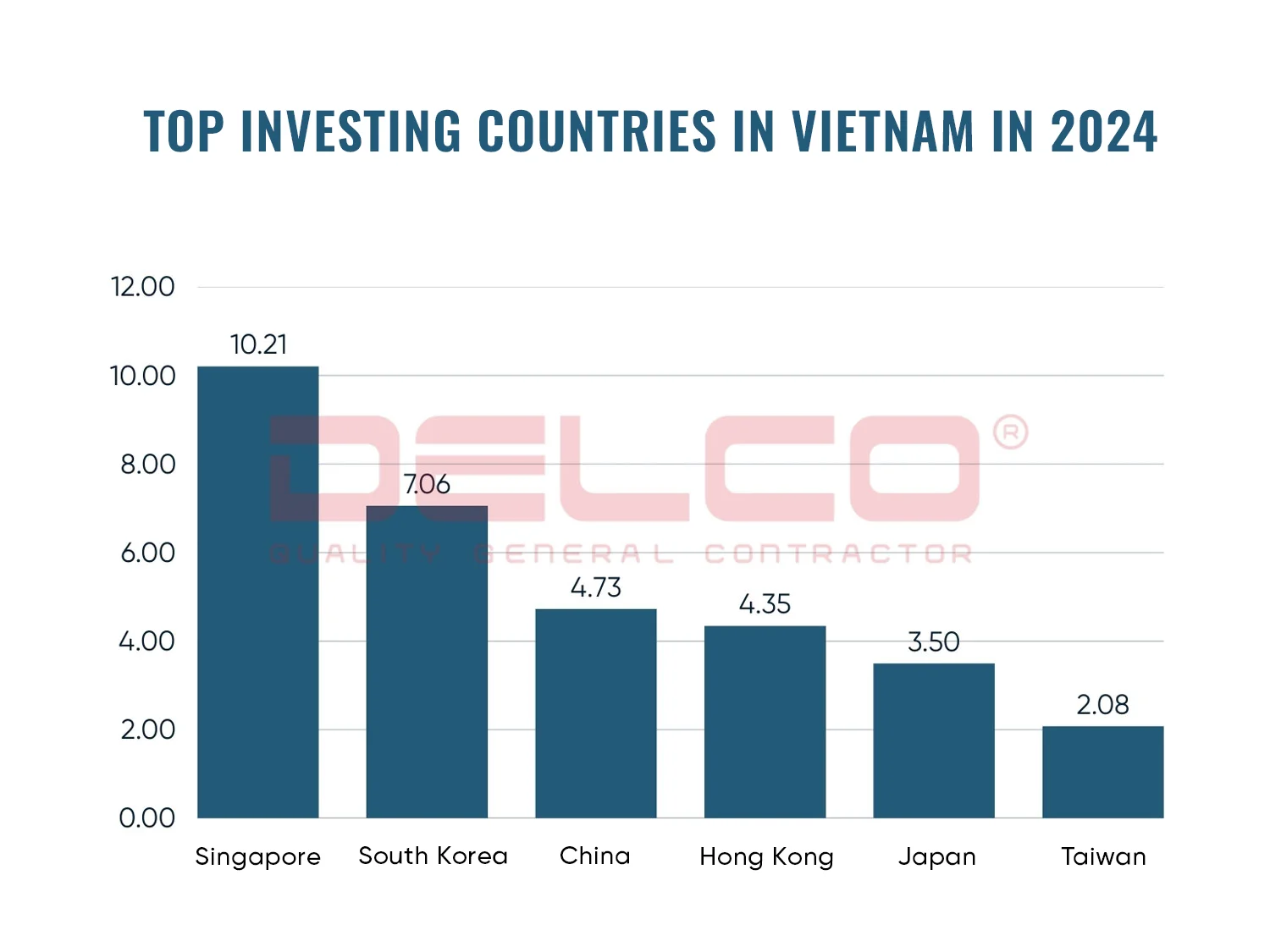 According to the General Statistics Office, Singapore ranked as the largest investor, with $10.21 billion in registered FDI, accounting for 26.7% of the total and marking a 31.4% increase from the previous year. South Korea came second with $7.06 billion, followed by China, Hong Kong, and Japan.