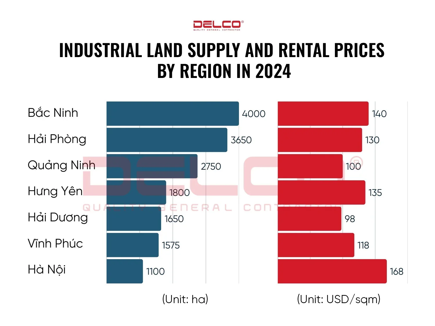 In 2024, the supply of industrial land in northern Vietnam continued to increase, with occupancy rates in key industrial zones surpassing 83%. Despite this growth, rental prices remain competitive, about 22% lower than in the south.
