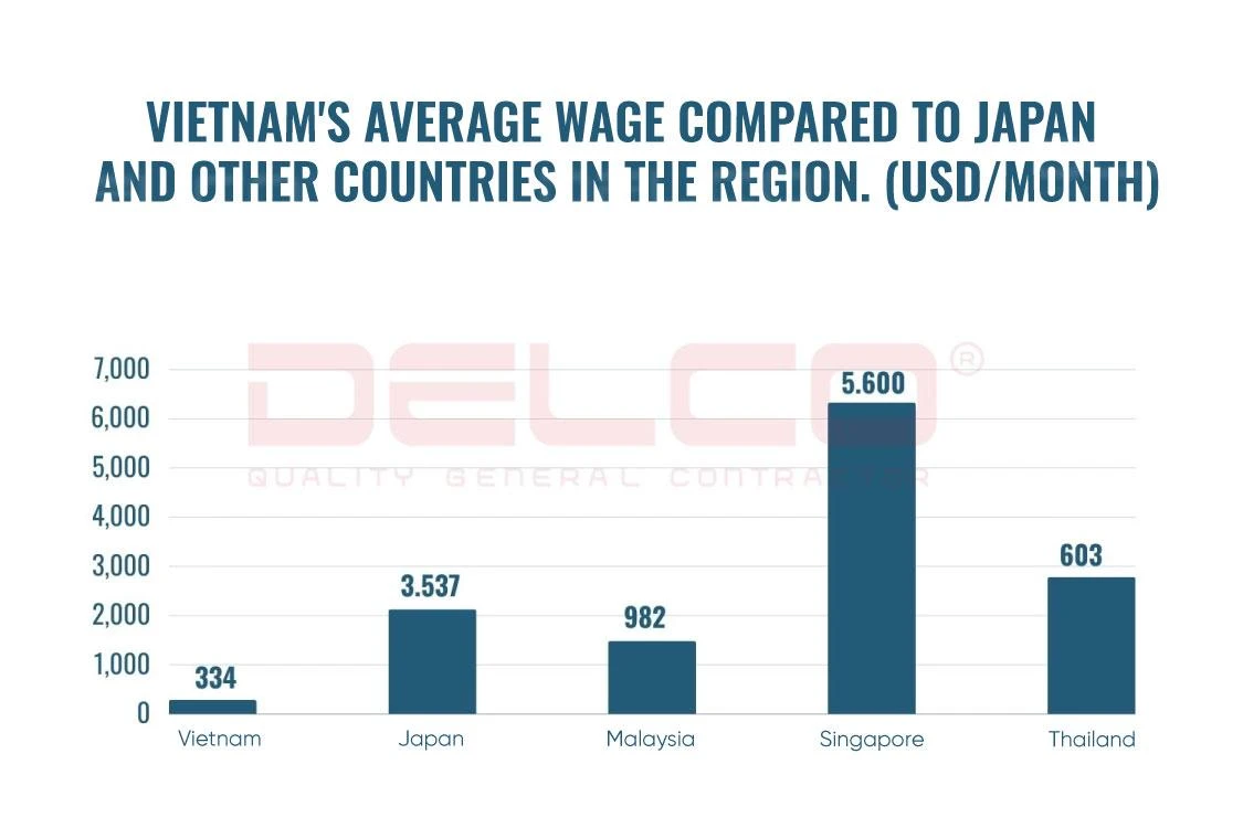 Vietnam’s average wage compared to Japan and other countries in the region.