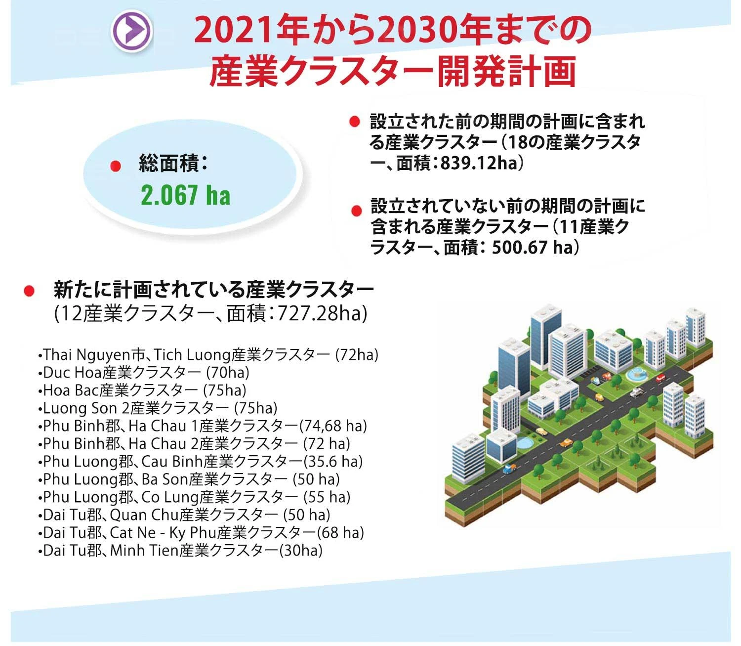 上記の7つの工業団地に加えて、Thai Nguyen省は、2050年までのビジョンを持って、2021年から2030年までの期間のThai Nguyen省のマスタープランにおいて総面積約1,860ヘhaの4つの工業団地の新たな計画を作成することも首相から承認されました。