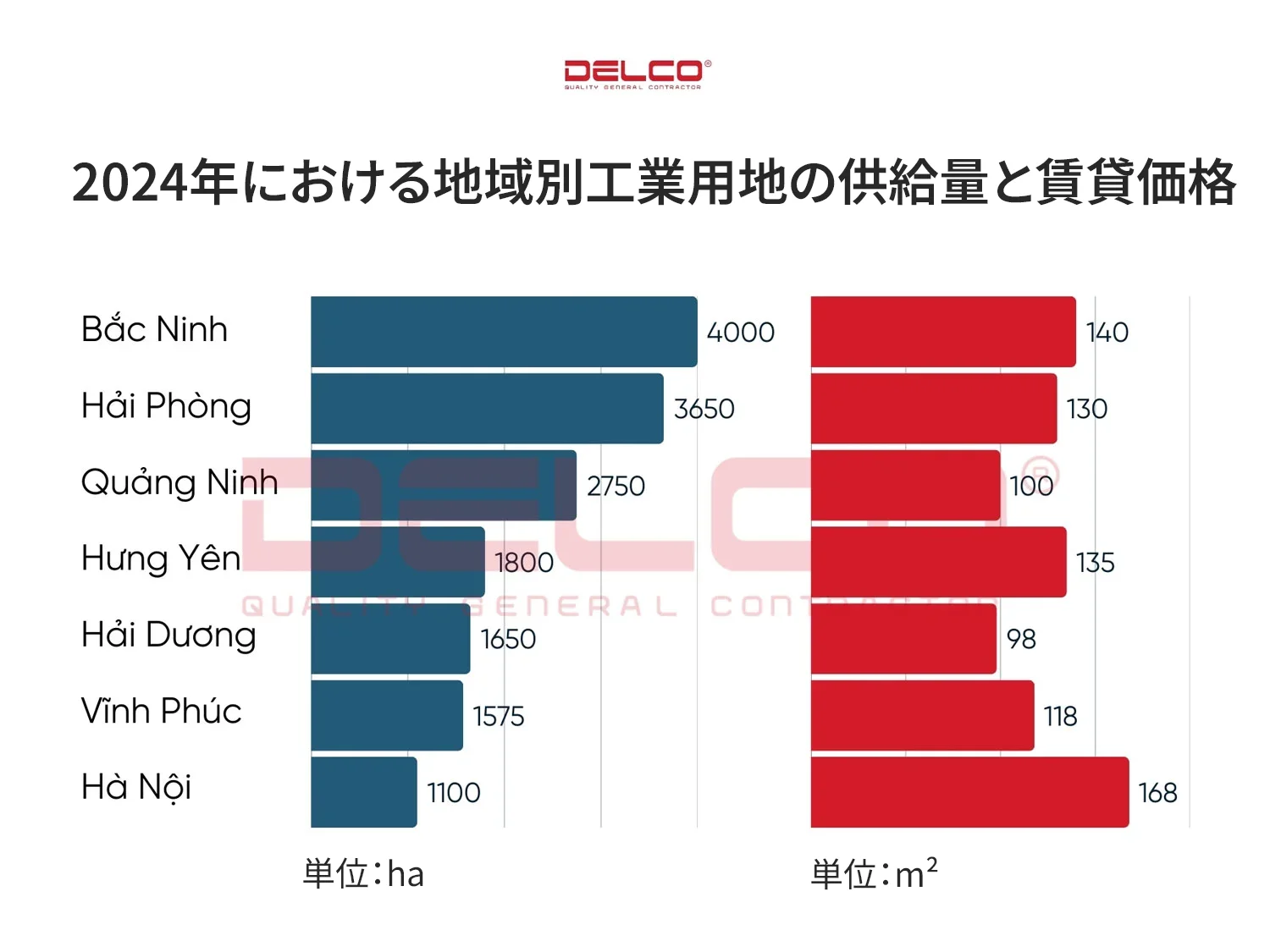 2024年、北部の工業用不動産市場は引き続き著しい拡大を見せており、電子機器、繊維・アパレル、自動車などの製造業の需要に応えるため、新たに約2,000haの賃貸用地が供給されました。2024年第3四半期時点で、北部の工業団地の総面積は16,700haに上り、前年同期比で16%増となりました。
