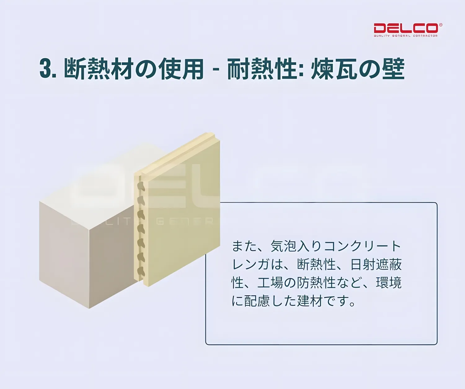 耐火レンガ、気泡入りコンクリートレンガなどは、不活性な材料でできているため、効果的に断熱・耐火性能を発揮することができます。