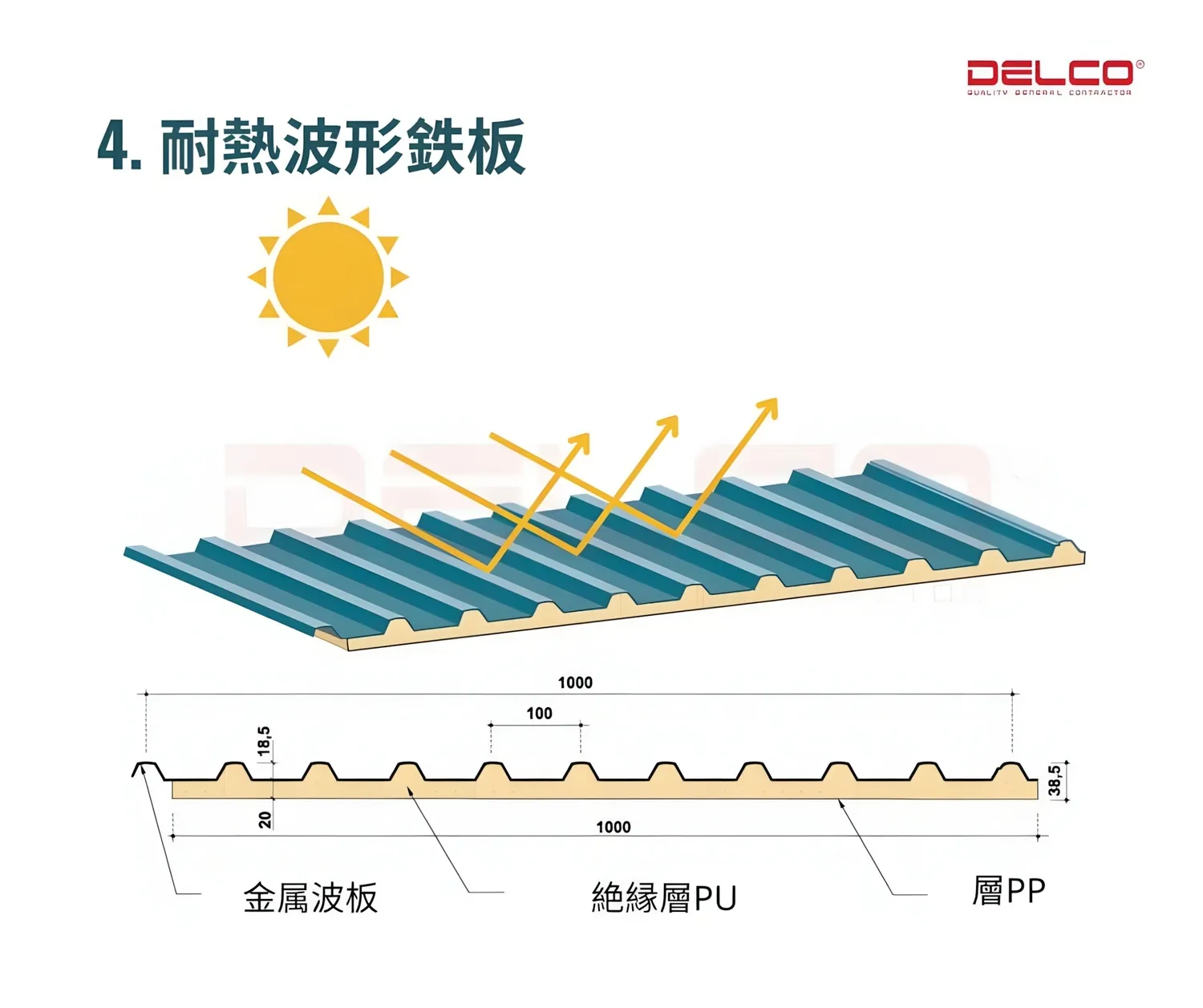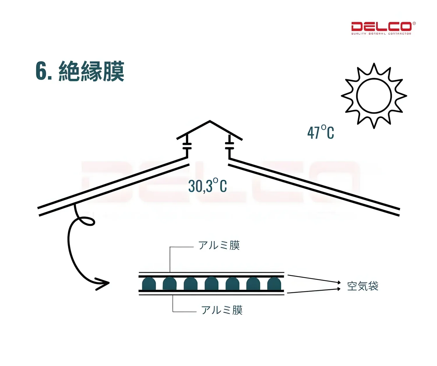 波板屋根の下に敷く断熱シートの一種で、波板屋根からの熱を軽減し、周辺空間への自然放射を防ぐものです。無機材料または有機材料で作られ、熱伝導率がは0.157W/m.0Cを下回るものです。