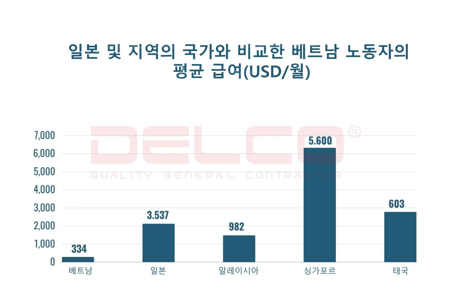 일본 및 지역의 다른 국가와 비교한 베트남의 평균 급여