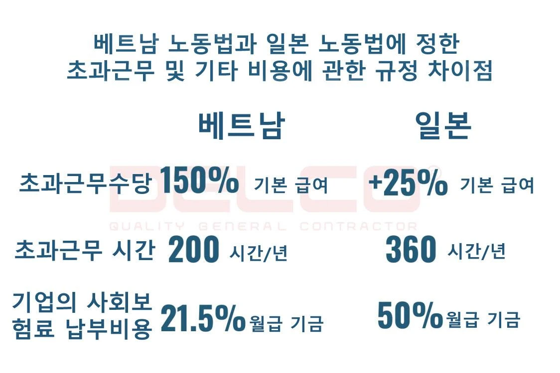베트남 노동법과 일본 노동법에 정한 초과근무 및 기타 비용에 관한 규정