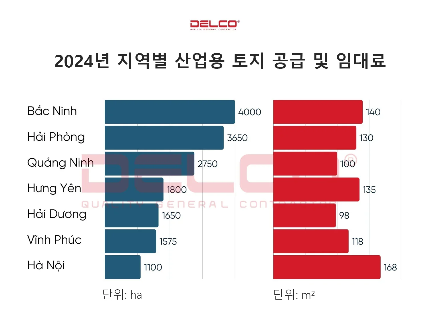 2024년, 북부 지역의 산업용 부동산 시장은 강력한 확장을 지속하며, 전자, 섬유, 자동차 등 제조업 분야의 수요를 충족하기 위해 약 2,000헥타르의 신규 임대용 토지가 추가되었습니다. 2024년 3분기 기준, 북부 지역의 산업단지 총 면적은 16,700헥타르에 도달하여 전년 동기 대비 16% 증가했습니다.