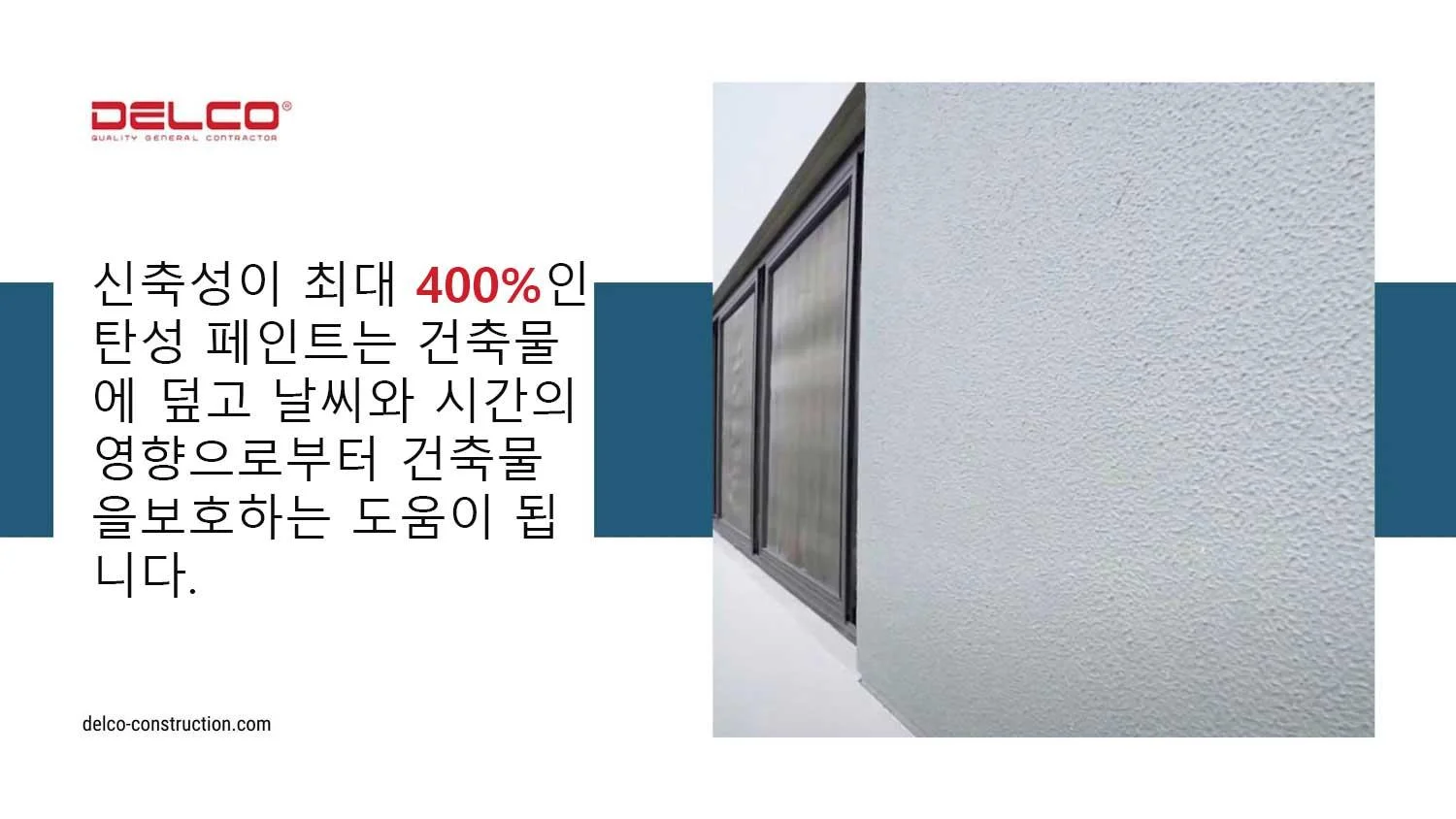 - 내구성이 높은 페인트가 필요하고 벽까지 4중 군열이 확장하는 것을 방지하는 중요한 전면