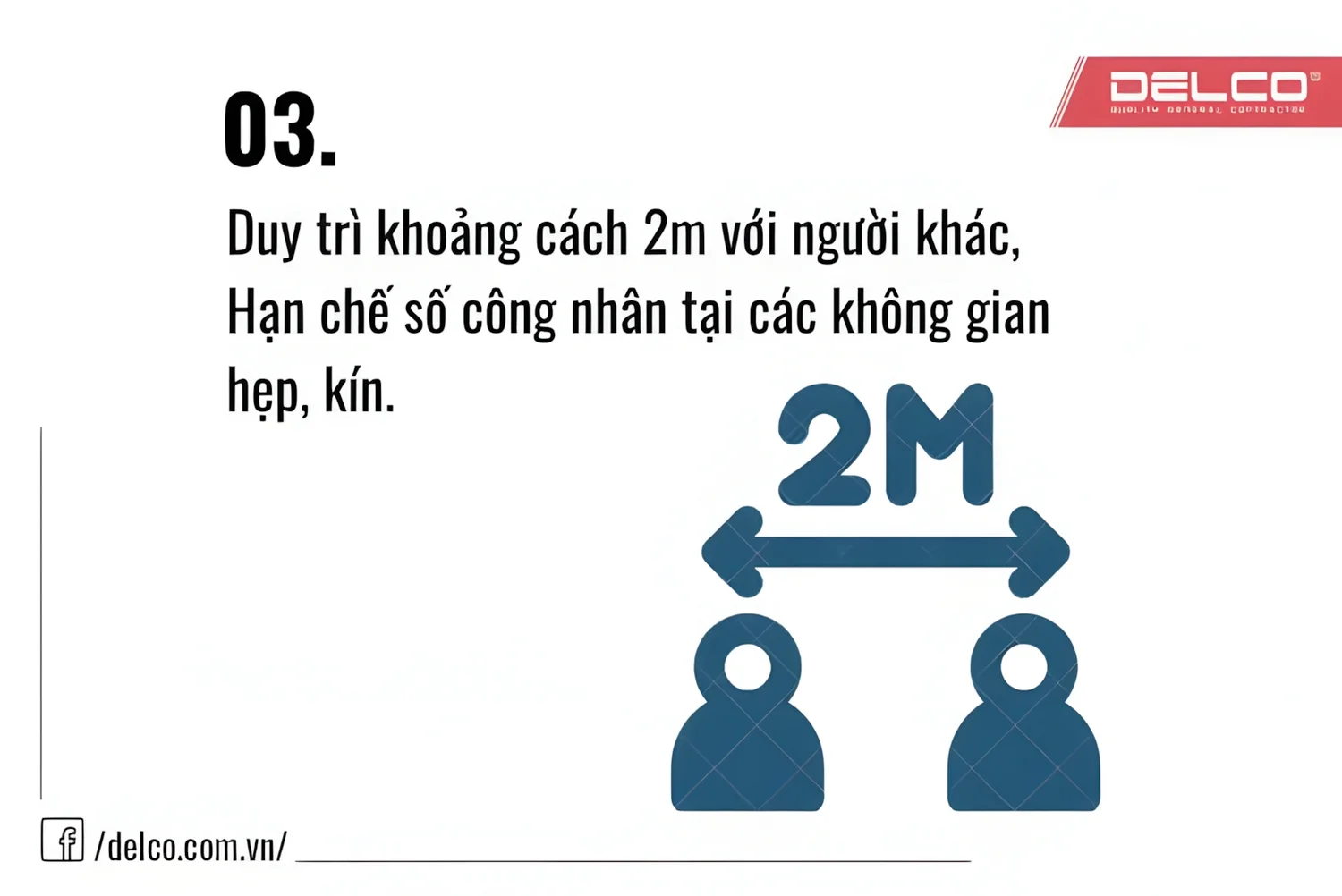 Covid–19 là dịch bệnh về đường hô hấp lây lan nhanh trong cộng đồng, chủ yếu qua giọt bắn từ người nhiễm virus khi ho, nói chuyện, hoặc tiếp xúc gần dưới 2m. Hiểu về cơ chế lây lan của virus, DELCO đã và đang triển khai hiệu quả 8 biện pháp phòng ngừa Covid – 19 tại các công trường xây dựng của mình: