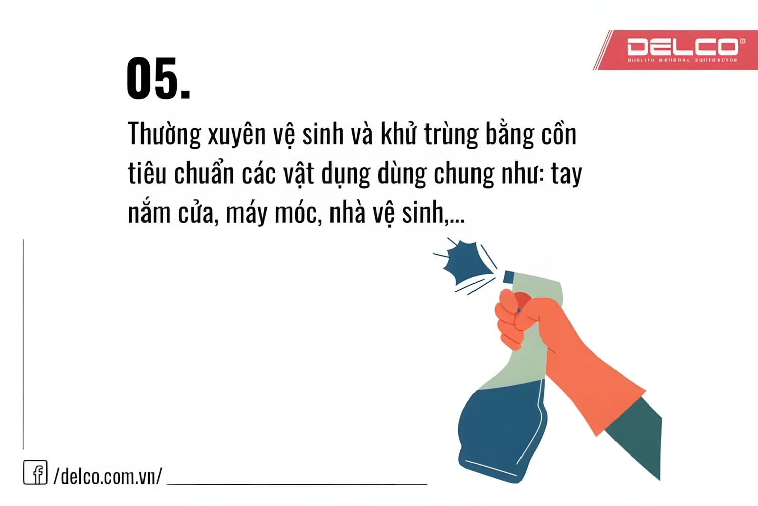 5. Thường xuyên vệ sinh và sát trùng các bề mặt công cộng