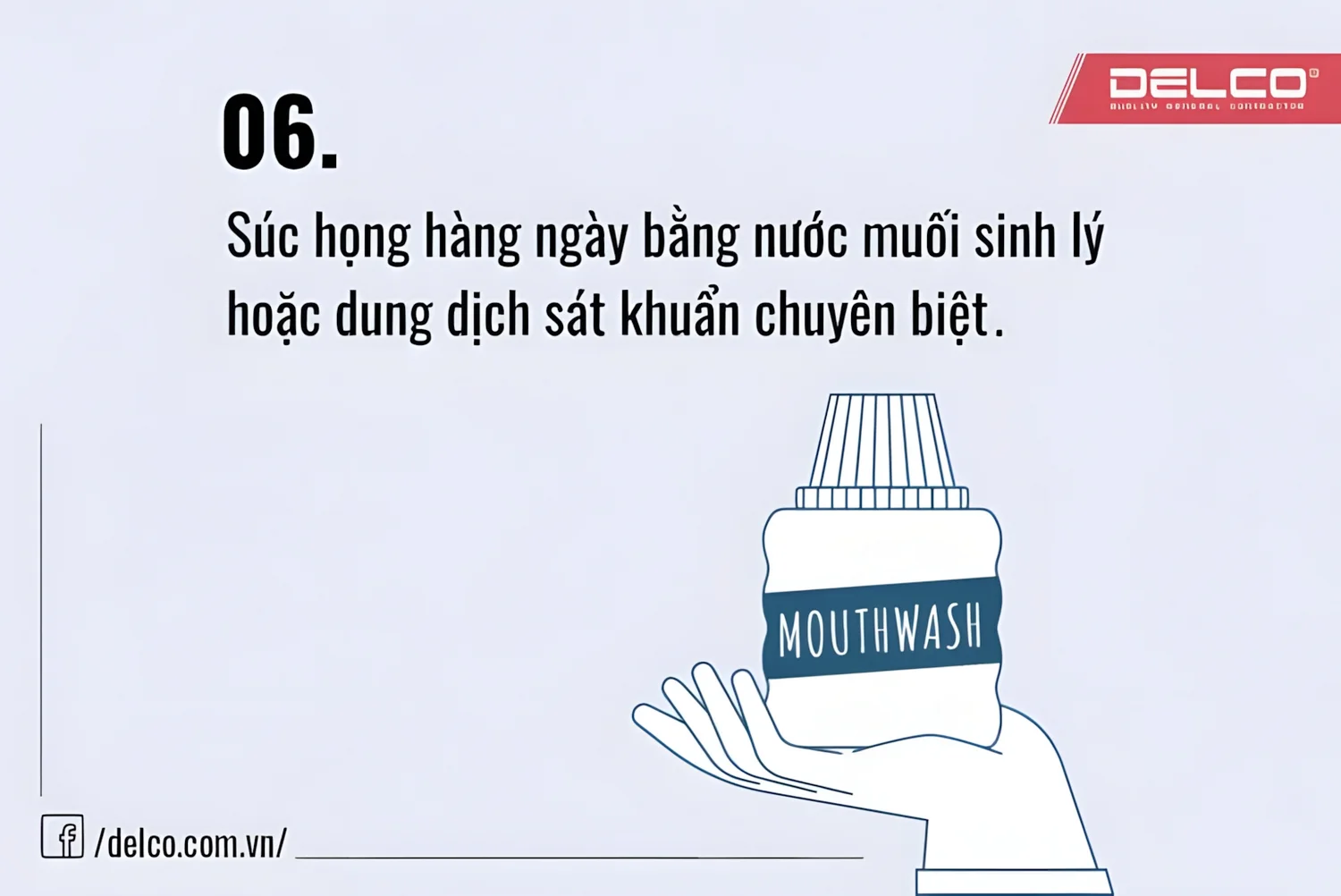 6. Súc họng hằng ngày bằng nước muối sinh lý hoặc dung dịch sát khuẩn chuyên biệt