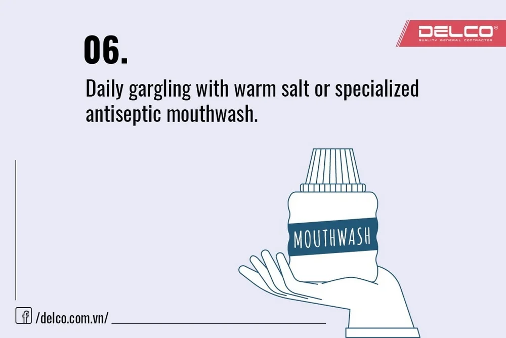 项目指导部还要定期提醒和鼓励工程师和工人保持清洁卫生习惯,每天用1.5%生理盐水或专用消毒液漱口。
