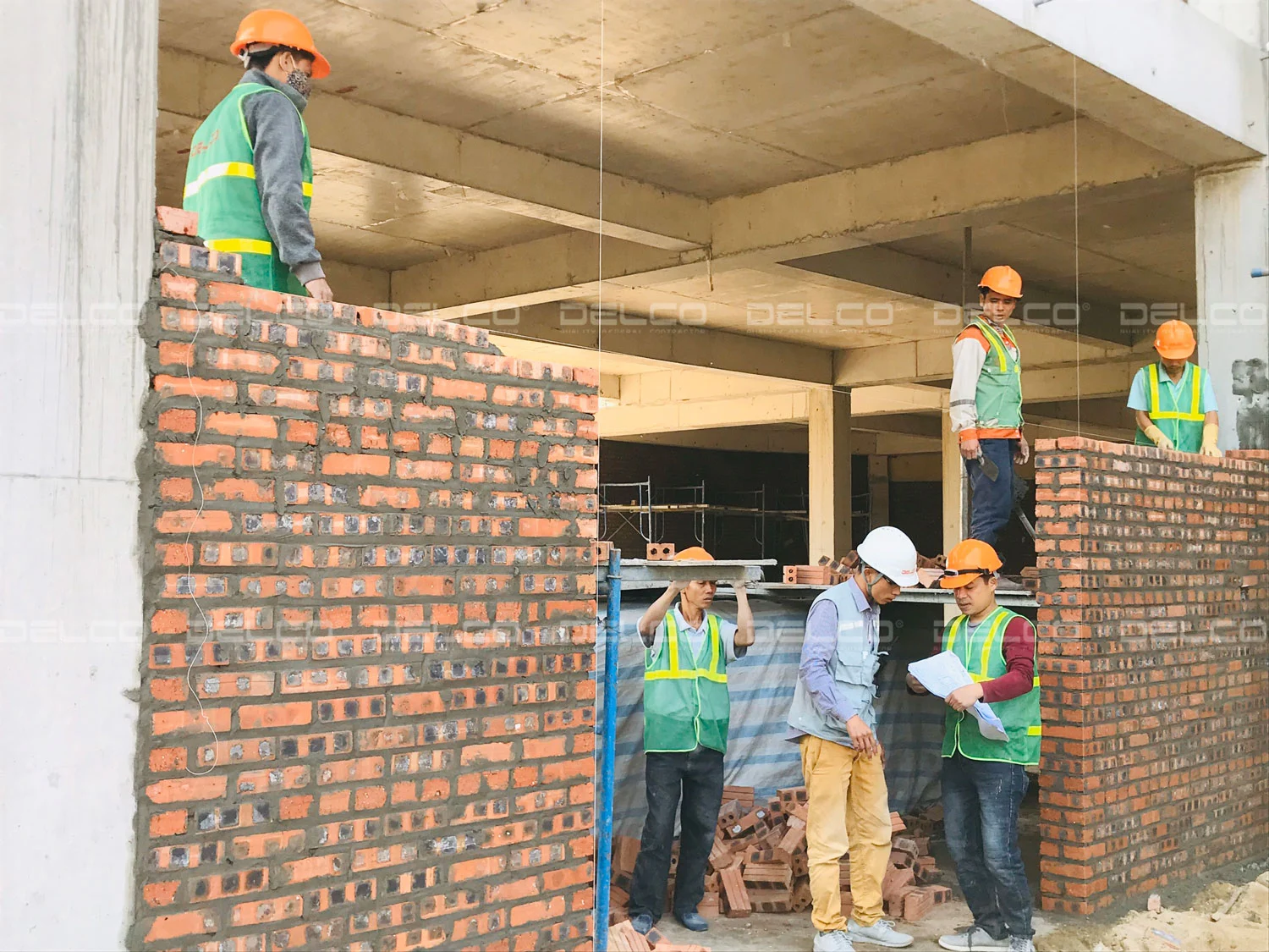 墙体质量首先取决于所使用的材料。所用砖块必须具备质量认证,并提供工厂的试验检测报告,同时必须提交样砖供业主审批后方可使用。用于砌筑的砂必须来源于合法采矿场,确保洁净、无杂质。水泥必须具备明确的产地及质量证明。砖、砂、水泥将被送检,以设计砂浆配比,只有当试验结果符合标准后,方可用于施工。
