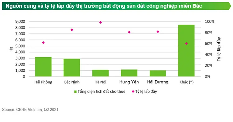 到2021年第二季度末,越南工业房地产市场总体上仍保持租金价格和入住率的积极走势。 根据计划投资部的报告,北部工业区的平均入住率约为80%,仅河内就高达90%。